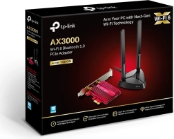 Povečajte zmogljivost svojega računalnika z brezžičnim omrežjem nove generacije zahvaljujoč Wi‑Fi 6 in zanesljivemu PCIe adapterju TP-Link Archer TX3000E. Ponuja hitrosti do 2402 Mb/s (5 GHz) + 574 Mb/s (2,4 GHz), občutno nižjo zakasnitev za tekoče igranje iger, Bluetooth 5.0 za hitro seznanjanje perifernih naprav ter magnetno osnovo z dvema antenama za boljšo pokritost. Podpira najnovejše WPA3 varovanje in je združljiv nazaj s standardi 802.11ac/a/b/g/n.