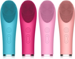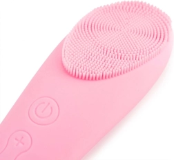 Ta rožnata silikonska sonična čistilna krtačka za obraz ponuja globinsko čiščenje kože in odstranjevanje ličil zahvaljujoč nežnim silikonskim izboklinam, primerna je za vse tipe kože.