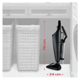 Lahka konstrukcija in ergonomska zasnova omogočata enostavno upravljanje tudi pod pohištvom. Poseben nastavek za preproge prinaša hitro in učinkovito osvežitev preprog in tekačev.