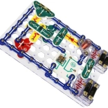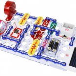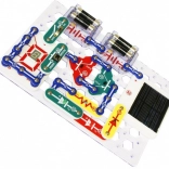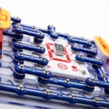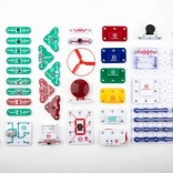 Deli se pritrdijo na osnovno ploščo s snap kontakti. Barvno razlikovanje in opisi komponent olajšajo orientacijo tudi otrokom od 8 let.
