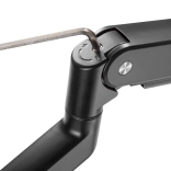 Ta nosilec je združljiv z monitorji s standardom VESA 75x75 in 100x100 mm. Izdelan je iz trpežne kovine in plastike, kar zagotavlja dolgo življenjsko dobo in stabilnost. Sistem za urejanje kablov poskrbi, da vsi vodi ostanejo urejeni in čisti, s čimer se zmanjšuje nered na mizi.