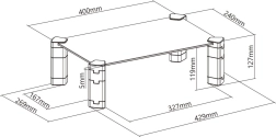 Montaža podstavka je enostavna in hitra, brez uporabe kakršnihkoli orodij. Mizne noge so sestavljene iz več delov, kar omogoča enostavno regulacijo višine natanko po vaših potrebah. Eleganten površinski sloj iz kaljenega stekla debeline 5 mm zagotavlja visoko odpornost.