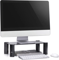 Podstavek podjetja Maclean je zasnovan za monitorje in prenosnike do teže 20 kg. Opremljen je z nastavljivimi nogami, ki omogočajo štiri ravni višine (34, 64, 94 in 124 mm). Tako si lahko prilagodite položaj zaslona natančno po vaših potrebah, kar prispeva k bolj zdravemu in udobnejšemu delovnemu okolju.
