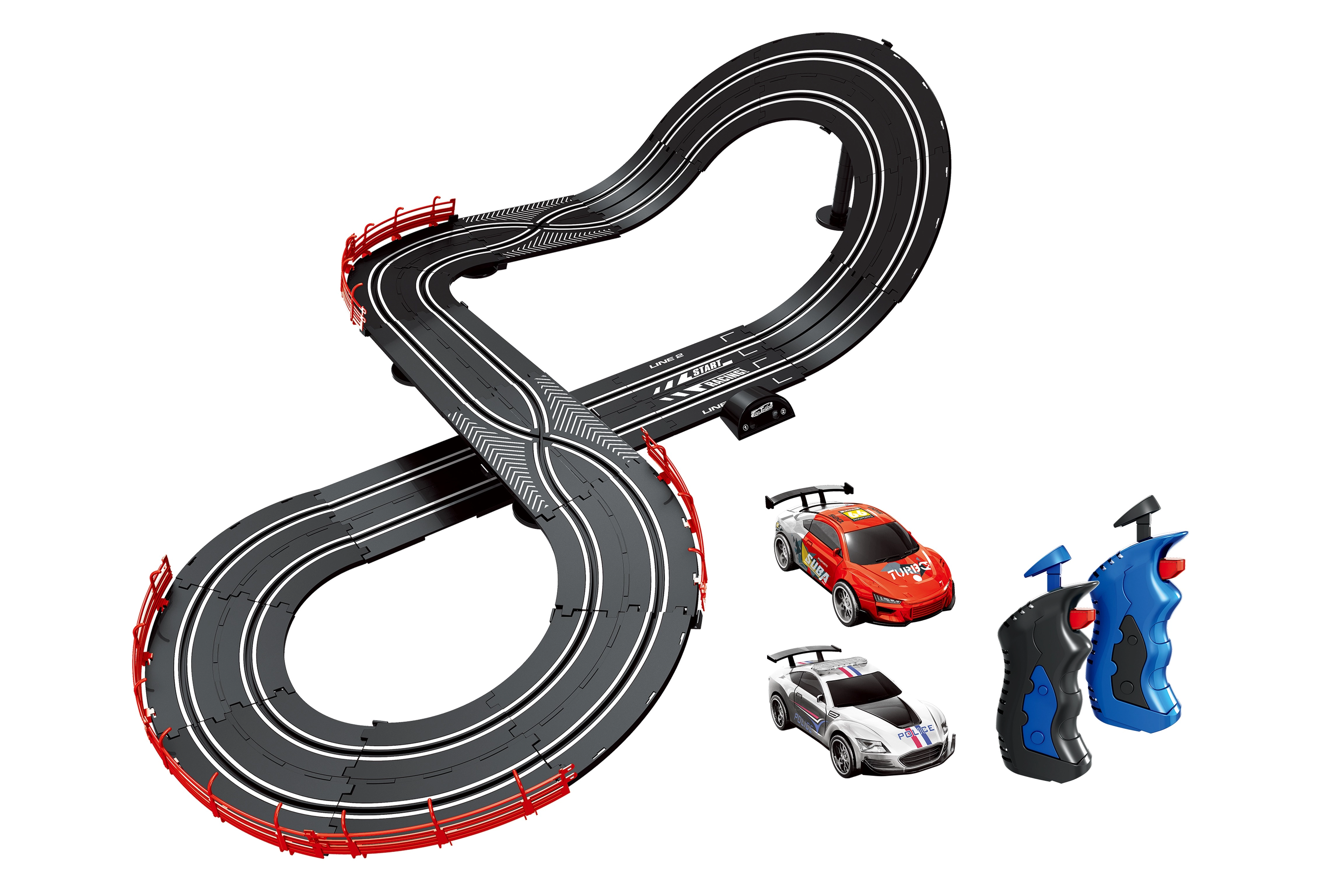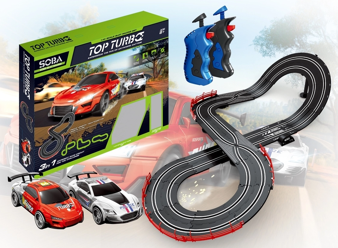 Zasukajte v akcijsko vožnjo z dinamično avtocesto, kjer se spopadeta policija in ropar. Uživajte v hitri dirkalni progi dolžine 340 cm, 3 možnostih postavitve in 2 avtomobilčkih z osvetljenimi lučmi za še več zabave. Idealna izbira za otroke od 8 let naprej in igrive odrasle.