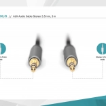 Avdio kabel MiniJack 3,5 mm prenaša zvok z odlično kakovostjo zahvaljujoč pozlačenim priključkom. Idealen je za priklop slušalk, zvočnikov ali avdio sistemov na različne naprave.