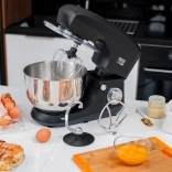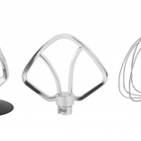 Ta kuhinjski robot prinaša komplet različnih nastavkov: kavelj za testo, ploščat mešalnik in žični mešalnik. Ti nastavki omogočajo tako mešanje kot stepanje in gnetenje.