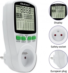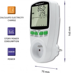 Ugotovite, katere naprave so največji “požeruhi” energije. Qoltec PM0627 omogoča natančno merjenje brez ugibanj, zato lahko zanesljivo izračunate stroške in ocenite učinkovitost prihrankov. Zahvaljujoč osvetljenemu LCD-ju zlahka preverite trenutno moč, vsoto kWh, čas in ceno glede na nastavljeno tarifo.