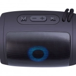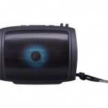 Eleganten valjasti dizajn z izrazitim LED obročem pritegne pozornost in dopolni vzdušje poslušanja. Kompaktno ohišje in pašček zagotavljata, da glasbo vzamete kamor koli.
