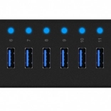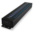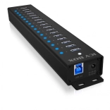 ICY BOX IB-HUB1717 je zmogljiv 17‑portni USB razdelilnik, zasnovan za delovne postaje, strežnike, delavnice in studie. Ponuja 16 priključkov USB 3.2 Gen 1 Type‑A za podatkovne prenose do 5 Gb/s na vsakem priključku ter en namenski priključek USB‑A za hitro polnjenje mobilnih naprav. Robustno popolnoma kovinsko aluminijasto ohišje zagotavlja zanesljivost in učinkovito odvajanje toplote tudi v zahtevnih pogojih.