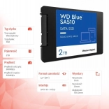 WD Blue SA510 je sodoben SATA SSD, zasnovan za ustvarjalce, profesionalce in zahtevne uporabnike, ki želijo pospešiti zagon sistema, delo s projekti in vsakodnevno produktivnost. Z bralno hitrostjo do 560 MB/s in nizko latenco občutno pospeši nalaganje aplikacij in delo z velikimi datotekami. Nizka poraba energije podaljša avtonomijo prenosnika med polnjenji, delovanje brez mehanskih delov pa odpravlja vibracije in zmanjšuje tveganje za izgubo podatkov ob padcu.