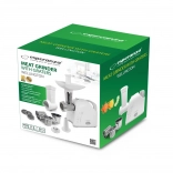 Univerzalni mlin za meso z ribežem ESPERANZA Wellington združuje visoko zmogljivost in praktičnost za vsako kuhinjo. Zahvaljujoč motorju z močjo do 2200 W zlahka zmeljete meso in druge sestavine, s tremi mrežami za mletje pa dosežete želeno grobost. Zamenljivi nastavki omogočajo pripravo klobas in kebaba/kebbe, medtem ko trije bobnasti ribežni hitro obdelajo sadle, zelenjavo, sir, čokolado ali oreščke. Kovinski polžasti pogon, nerjavno jekleno rezilo in nedrseče nogice zagotavljajo dolgo življenjsko dobo in varno uporabo.