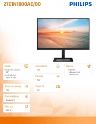 Philips 27" IPS 4K monitor je idealna izbira za delo z grafiko, preglednicami in za zabavo. Ločljivost 3840 × 2160 prinaša ostro sliko polno detajlov, tehnologija IPS zagotavlja verne barve in široke vidne kote. Vgrajeni zvočniki prihranijo prostor na mizi in ponujajo udobno poslušanje.