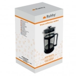 Stekleni french press RUHHY združuje preprostost priprave s polnim okusom pijače. Prozorna posoda vam omogoča nadzorovati intenzivnost namakanja, medtem ko nerjaveče batno sito učinkovito loči usedline in lističe čaja za popolnoma čist preliv. Prostornina 1 liter je idealna za 3–6 porcij, zato je odlična za družine in druženja s prijatelji.
