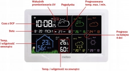 Ta meteorološka postaja omogoča brezžično merjenje temperature v razponu od -30 °C do +50 °C in merjenje zračne vlage za notranje in zunanje okolje.