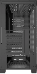 Ohišje je zasnovano z mislijo na enostaven dostop in vzdrževanje: magnetni sprednji panel brez vijakov, integriran sistem upravljanja kablov in stabilizacija s pomočjo trapezoidnih nogic. Za zagotavljanje optimalnih temperatur omogoča napredno cirkulacijo zraka – podpira namestitev do 12 ventilatorjev ali 360 mm vodnega hlajenja.