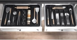 Pregledna razporeditev za jedilni pribor in kuhinjska orodja pospeši kuhanje in izboljša organizacijo vsakodnevnega dela v kuhinji.