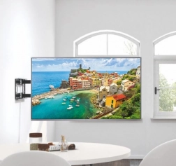 Naklon od +5° do -15°, vrtenje za ±90° in nastavitev razdalje od stene povečajo udobje pri gledanju.