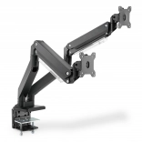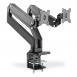 Ergonomska nastavitev položaja monitorja zagotavlja udobje in učinkovitost. Ta nosilec za dva monitorja je enostavno namestiti s pomočjo sponskega pritrditvenega sistema za monitorje do 35" in teže do 15 kg vsak.