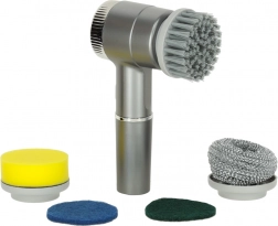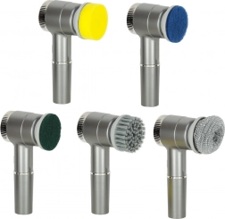 Električna krtača, 5× nastavek (goba, 2× tekstilni pad, najlonska krtača, strgalo), USB kabel