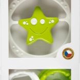 Praktičen komplet za najmlajše: ropotuljica–veriga za voziček ali posteljico ter samostojna ropotuljica v obliki zvezdice ali cvetka. Podpira razvoj sluha, vida in tipa, naravno uri prijemalni refleks in je zasnovan z poudarkom na varnosti – brez ostrih robov in brez snemljivih majhnih delov. Na voljo v različnih barvah in v 2 motivih.