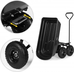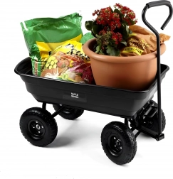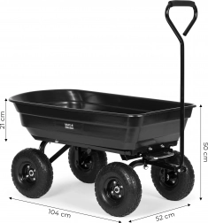 Doživite enostavno in učinkovito vrtnarjenje z vrtnim vozičkom MultiGarden. Ta praktični pomočnik je idealen za vrtove, zemljišča in kmetije. S svojo veliko tovorno površino 94x52 cm in maksimalno nosilnostjo 200 kg omogoča voziček enostaven prevoz zemlje, lesa, kamnov, orodja ali sadik. Trdna kovinska konstrukcija zagotavlja dolgo življenjsko dobo, medtem ko velika napihljiva kolesa s profilom omogočajo enostavno prevažanje po neravnem terenu.
