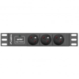 Ta 10" rack PDU podjetja LANBERG je zasnovana za vodoravno 1U montažo in zagotavlja varen razvod napajanja v profesionalnih instalacijah. Ponuja tri francoske vtičnice (NF C 61-314), enofazni vhod, robustno aluminijasto ohišje ter samodejni odklopnik z LED indikacijo za hitro diagnostiko.