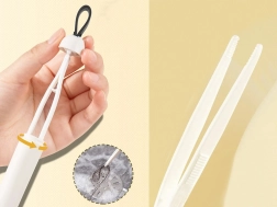 Praktična pinceta, skrita v ročaju, pomaga izvleči lase in nečistoče iz odtokov in ozkih rež.