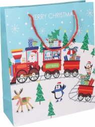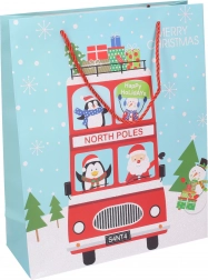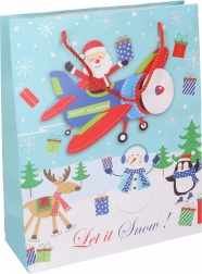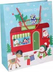 Slogovna božična darilna vrečka srednje velikosti za preprosto in elegantno zavijanje daril. Kakovosten papir, čvrsti ročaji in štirje praznični motivi dodajo vašim darilom božični čar.