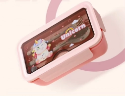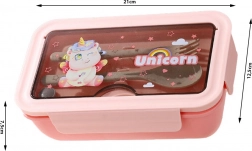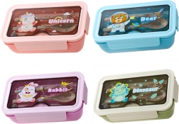 Škatla je izdelana iz trpežne plastike in ponuja skupno prostornino 1 l, idealno za zajtrke, kosila in malice. Kompaktne mere se prilegajo v šolsko torbo ali delovno torbico. Na voljo je več barv: rožnata, modra, vijolična, zelena.