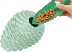 • Odprtina za priboljške: motivira k igri in spodbuja počasnejše hranjenje.