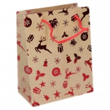 Čudovita božična darilna vrečka dimenzij 23x18x10 cm z različnimi motivi je popolna za zavijanje manjših daril. Omogoča hitro in elegantno darilno pakiranje brez nepotrebnih ovojev.