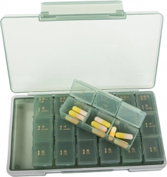 Praktična škatla za zdravila vam pomaga spremljati dnevne odmerke. Zahvaljujoč izvlečnim predelkom boste zlahka načrtovali zdravila za cel teden.