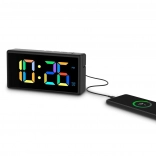 Hama Ibiza združuje sodoben dizajn in vsakodnevno uporabnost. Velik in pregleden večbarvni zaslon si prilagodite z izbiro barve (bela, modra, zelena, rdeča) ali barvnimi prehodi ter preklapljajte med 12/24-urnim formatom. Zaradi štirih stopenj svetlosti in možnosti popolnega zatemnitvenega izklopa med polnjenjem prek USB zaslon ne bo motil spanca.