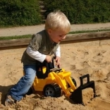 Otroški nakladač Lena v črno- rumeni izvedbi iz visokokakovostne plastike, ki izpolnjuje evropske standarde. Opremljen s premično roko z zajemalno žlico, kar omogoča odlično zabavo za otroke.
