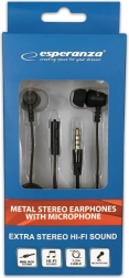 Kovinske slušalke z mikrofonom so idealne za predvajalnike zvoka, MP3/MP4, računalnike in druge naprave s standardnim avdio izhodom. Opremljene so z vzdržljivimi in prilagodljivimi gumijastimi nastavki, ki zmanjšujejo hrup iz okolice ter zagotavljajo izrazit basovski učinek.