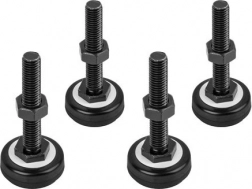 Gumijasti čevelj duši vibracije in preprečuje drsenje, medtem ko navoj M10 omogoča fino nastavitev višine za popolno ravnino.