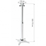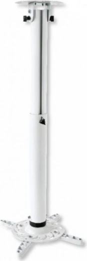 Ta bel stropni nosilec za projektor združuje vzdržljivo kovinsko konstrukcijo s praktično prilagodljivostjo za popolno postavitev projektorja. Zahvaljujoč nastavljivemu stebru 50–77 cm zlahka prilagodite višino projekcije svojim potrebam, medtem ko univerzalna montažna plošča omogoča združljivost z večino projektorjev na trgu.