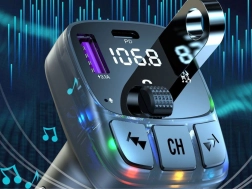 Večnamenski FM oddajnik za avto z Bluetooth 5.3 omogoča brezžično predvajanje glasbe, prostoročne klice in hitro polnjenje prek USB‑C PD 30 W in 2× USB. Elegantna LED osvetlitev in jasen digitalni zaslon izboljšata upravljanje tudi ponoči.