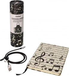 Slogoven kuhinjski predpasnik z glasbenim motivom not v praktični tubi bo razveselil vsakega ljubitelja kuhanja in glasbe. Ponuja udobno nošenje, dva praktična žepa in preprosto vzdrževanje zahvaljujoč 100 % poliestru. Odličen kot izvirno darilo in za vsakodnevno uporabo, z odpornim materialom ter funkcionalnimi žepi za drobnarije.