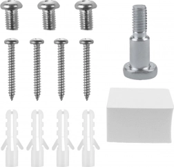 Vzdržljiv material z nosilnostjo do 10 kg ter paket z vijaki in vložki za hitro in varno pritrjevanje.