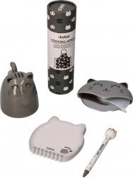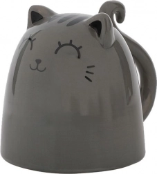Ta siva skodelica z živalskim motivom izstopa po igrivem videzu – ročaj v obliki mačjega repa in nežno upodobljen mačji obraz dodata vaši mizi edinstven šarm. Zaradi udobnega oprijema in univerzalne oblike je odlična za vsakodnevno uporabo doma ali v pisarni.