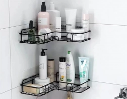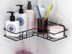 Ohranite urejen pršni kotiček s kotno kopalniško polico iz trpežne kovine. Montaža brez vrtanja s pomočjo močnih samolepilnih nosilcev, na voljo sta dve odlagalni ravni in praktični kavlji za dodatke. Njena odprta mrežasta zasnova zagotavlja hitro odtekanje vode in higieno, medtem ko robusten material in protikorozijska obdelava zagotavljata dolgo življenjsko dobo. Idealno za šampone, gele za prhanje, gobice in brisače.