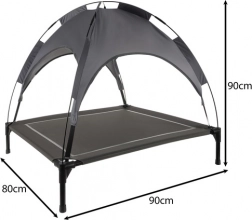 Dvignjena pasja postelja PURLOV s baldahinom je *idealna za notranjo in zunanjo uporabo*. Ponuja *udobje in varnost* za vašega psa zahvaljujoč premišljeni konstrukciji in vodoodporni strehi.