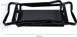 Robustna kovinska konstrukcija zagotavlja stabilnost in vzdržljivost, medtem ko mehko oblazinjenje iz EVA pene nudi potrebno udobje pri vseh aktivnostih na vrtu, kot so pletje, sajenje ali žetev. Dva odstranljiva žepa nudita dovolj prostora za shranjevanje vrtnarskega orodja.