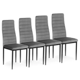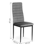 Set štirih oblazinjenih stolov predstavlja eleganten in sodoben element vsakega interierja. Ti stoli ponujajo odlično udobje zahvaljujoč oblikovanemu naslonu in visokokakovostnemu polnilu iz pene. Opremljeni so z ravnimi, črnimi kovinskimi nogami za popolno stabilnost in moderen dizajn.