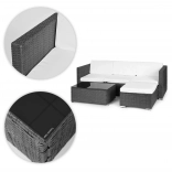 Spremenite teraso ali vrt v prijeten kotiček za sedenje. Ta sedežna garnitura MULTIGARDEN združuje moderen videz tehno ratana z udobjem mehkih blazin in praktično mizico s črno stekleno ploščo. Zahvaljujoč štirim samostojnim modulom lahko sestav zlahka prilagodite prostoru in trenutni priložnosti.