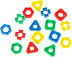 Ta edukativni komplet je idealen za igre tipa »priredi obliko«. Pri privijanju otroci krepijo fino motoriko, izboljšujejo logično razmišljanje in trenirajo koordinacijo oko–roka. Žive barve hkrati pomagajo pri učenju barv in oblik.