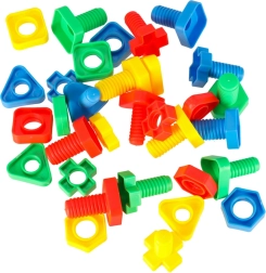 Barvit Montessori komplet v obliki vijakov in matic razvija fino motoriko, logično razmišljanje ter koordinacijo oko–roka. Otroci vadijo prepoznavanje oblik in barv z nalogo priviti pravi vijak v ustrezno matico. Set vsebuje 30 delov v živahnih barvah, ki otroke spodbujajo k igri in učenju.