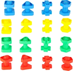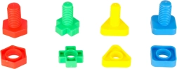 Posamezni vijaki in matice imajo različne oblike, ki jih je treba pravilno ujemati. Zaradi preprostega principa je komplet primeren za predšolske otroke in odlično podpira prostorsko predstavljivost ter potrpežljivost.