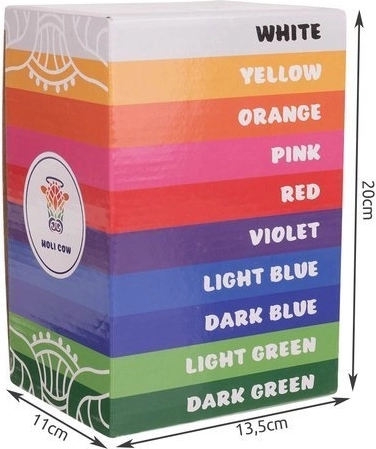 Doživite atmosfero barvnih festivalov s popolnim kompletom 10 izrazitih odtenkov. Barvni prah HOLI je izdelan iz koruznega škroba z visokokakovostnimi barvili, zato je lahek, lepo lebdi in ustvarja fotogenične učinke pri metanju v zrak in na skupinskih dogodkih.